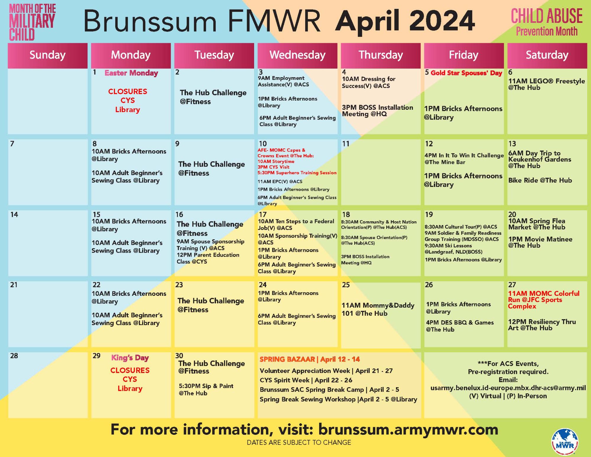 We are currently revising our monthly calendar process for USAG Benelux. Please check back for updates.